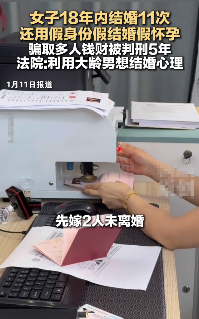 在广西来宾,有个张姓女子,把结婚硬生生做成了“产业链”。还没跟前两任丈夫办完手续,转脸又跟9个男人玩起了结婚离婚。就在2025年12月12日,法院判决下来了:重婚加诈骗,5年牢饭,外加退赔所有血汗钱!