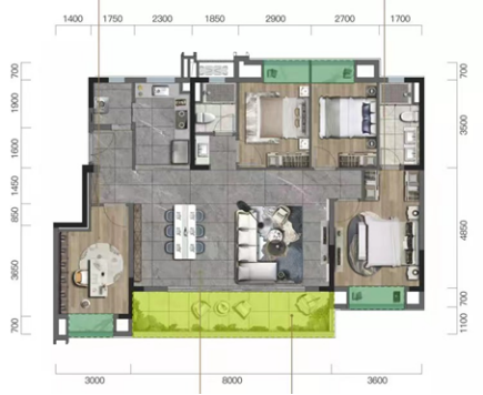 无论如何,该户型客厅空间所营造出的尺度感是很多项目中少有的,应该也是天府新区独一例的存在。