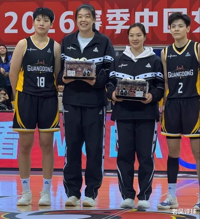广东女篮的老板梁志斌亲自为于东和沈怡送上退役纪念球衣,杨舒予和陈明伶给于东和沈怡送上专属的退役礼物,两位小将给老将送礼,也体现了广东女篮队内的传承。