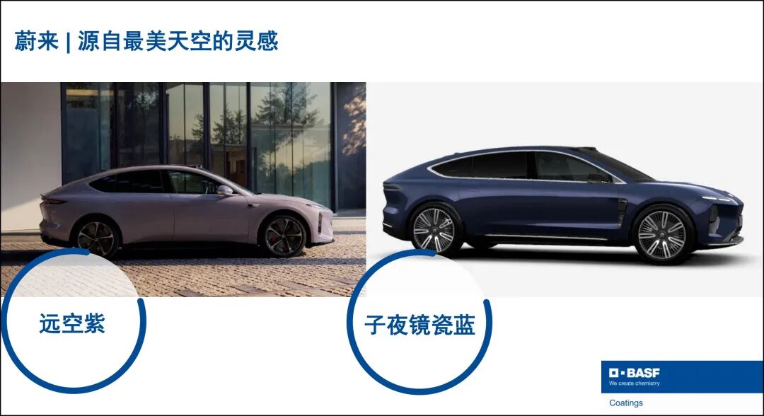 不过这里说的亚洲趋势色并不包含中国市场,巴斯夫针对全球最大的单一市场单独调研出中国趋势色,叫做夜曲蓝。你很难界定这种颜色到底是蓝色还是紫色。夜曲蓝的精髓在于前沿创新材料所带来的精致随角异色效果。所谓的随角异色,就是随着观看角度的不同这种颜色会在蓝色和紫色之间有细微的切换,而且随着光照角度的不同,还会看到漆面上有宛如星空般的钻石反光。