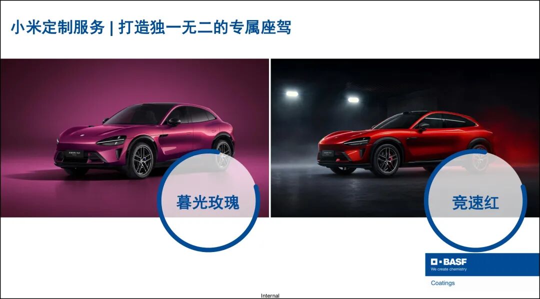 最后就是小米YU7,有竞速红和暮光玫瑰两款车色入选,不过这两款颜色都是选配色,前者需要消费者多花14000元,后者则是需要消费者多花11000元——这还没完,这两款选配色是32.99万元顶配版本的独享选配色,非顶配版本的消费者就算愿意花钱,小米也不卖。