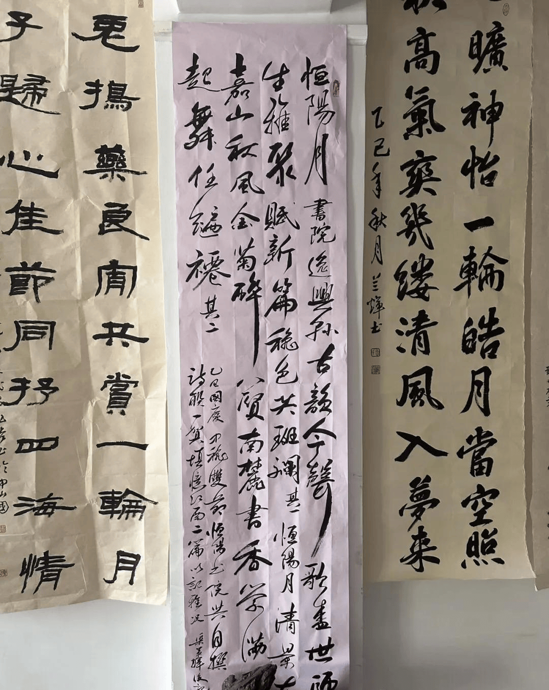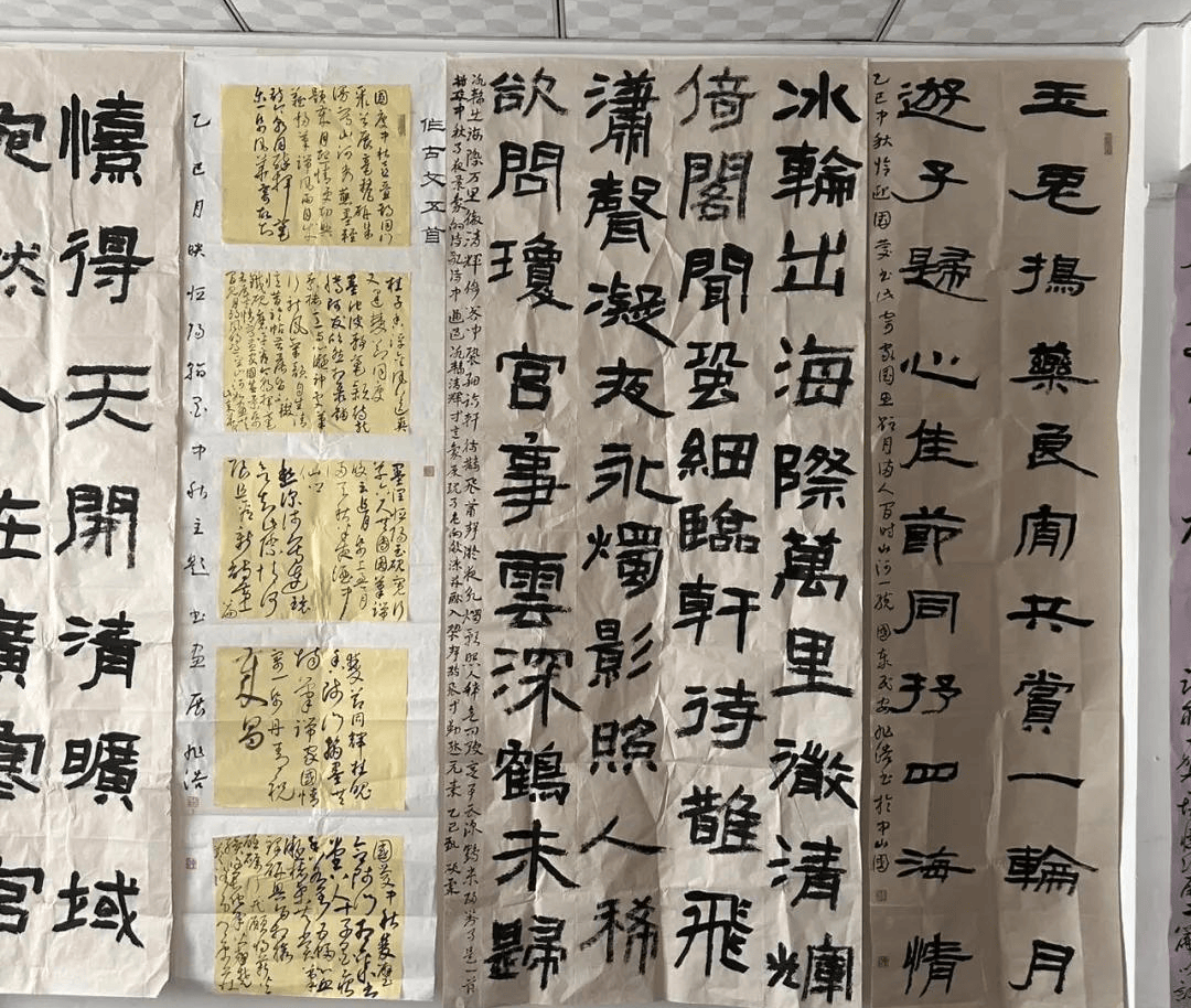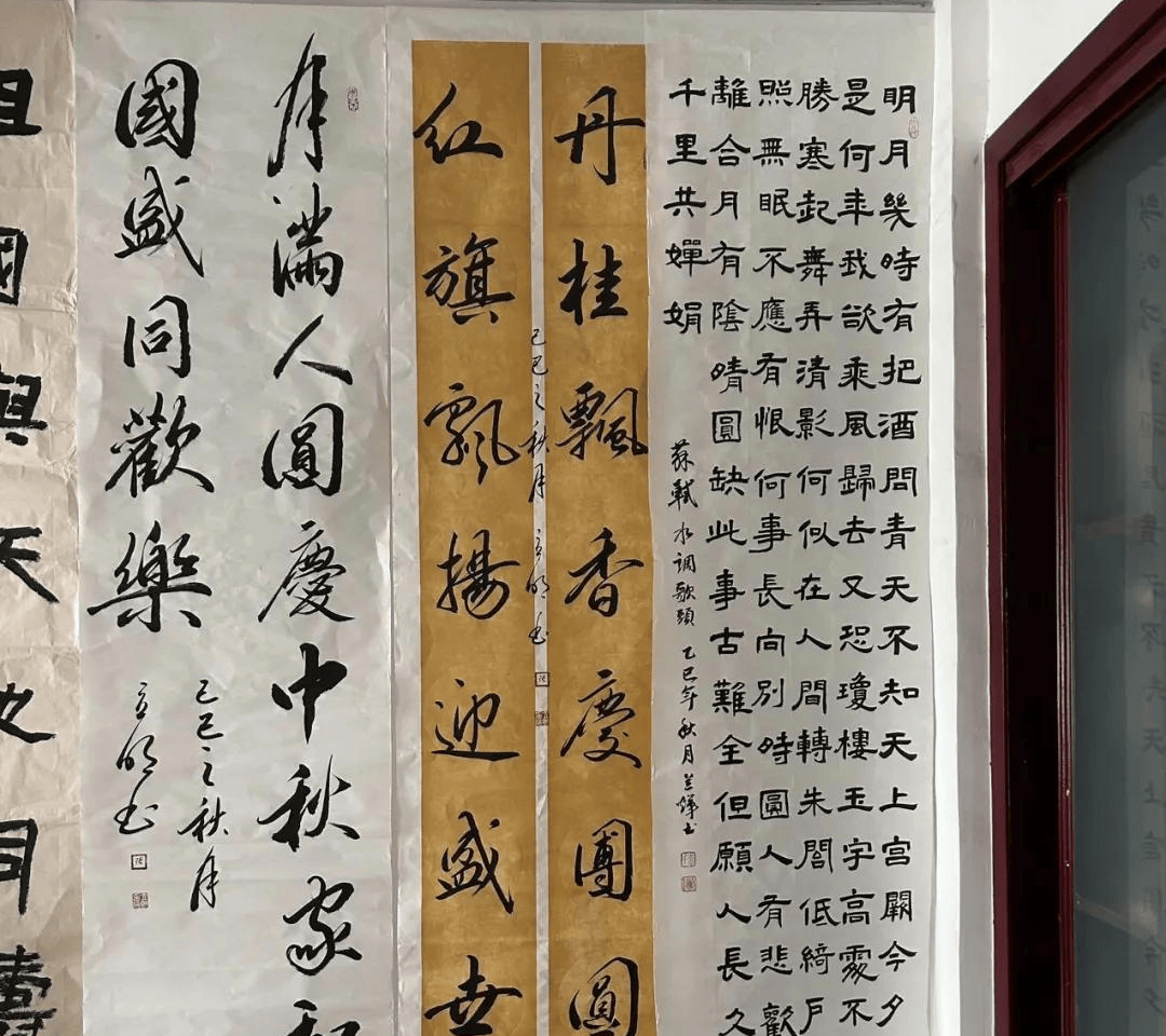 展览现场,书画爱好者们相聚一堂,或驻足品鉴作品细节,或围坐交流创作心得。此次活动,以笔会友,在交流中品悟艺术温度,从篆书的古朴典雅,到行书的飘逸灵动;每一幅作品都是创作者对中秋文化的理解与表达,或寄情于月,或抒怀于团圆,让观者在墨香中沉浸式感受传统文化的魅力。