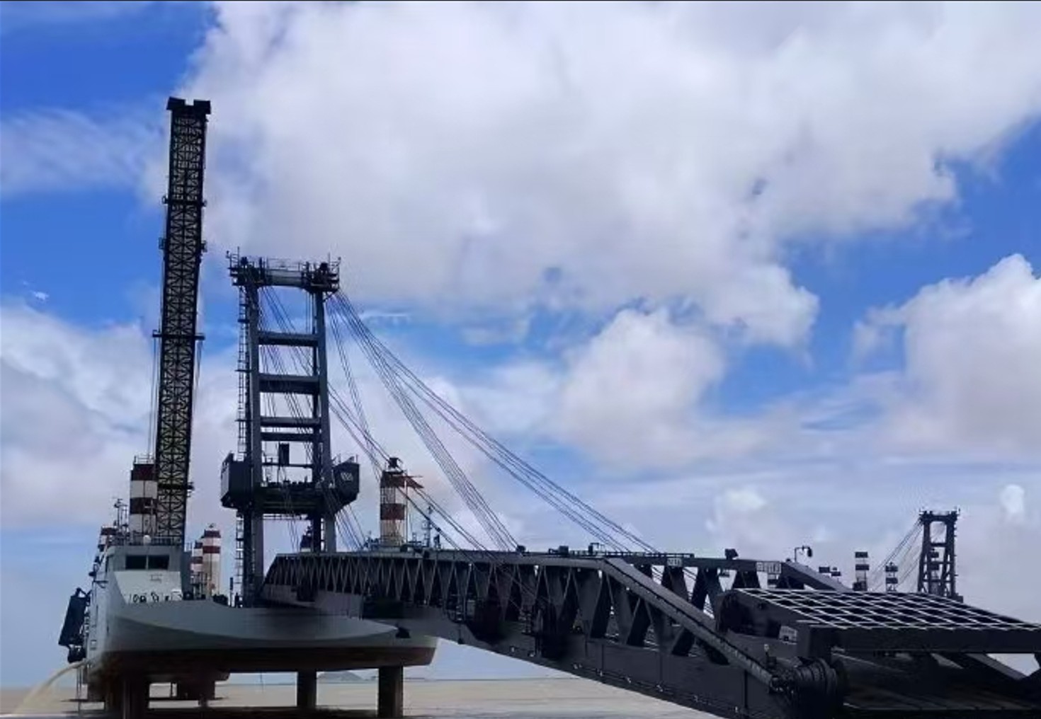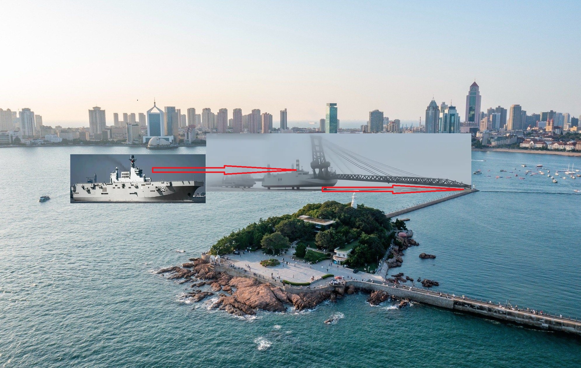 海军的“十里长安街”, 是由东工401、402、403三艘工程船与075舰共同搭建的 “凌海飞廊”。当三艘工程船依次放下栈桥、首尾衔接,进而与075型舰的甲板连成一体时,一条总长度超1公里的钢铁长廊便凌空跨海铺就而成——这既是人类船舶史上的长度纪录,也是人类两栖登陆投放范畴内的最强记录。参阅的所有两栖装备和人员衔接组成延绵的长龙,完全可以让军靴不被碎浪打湿、履带不虞海沙阻陷,从海上直接凌驾于敌岛。这就是当代崭新两栖技术形式下,全球范围内中国海军唯一独享的十里长安街。当两栖战车编队以冲击速度直接飞驰登岸;当陆战队军靴在栈桥钢板上的纷乱顿踏之声震响海滩,这就是无可质疑的证明:还在指望“万顷海涛”能充当隔绝中国力量的投放,净是些随时可以被碾碎的幻呓。