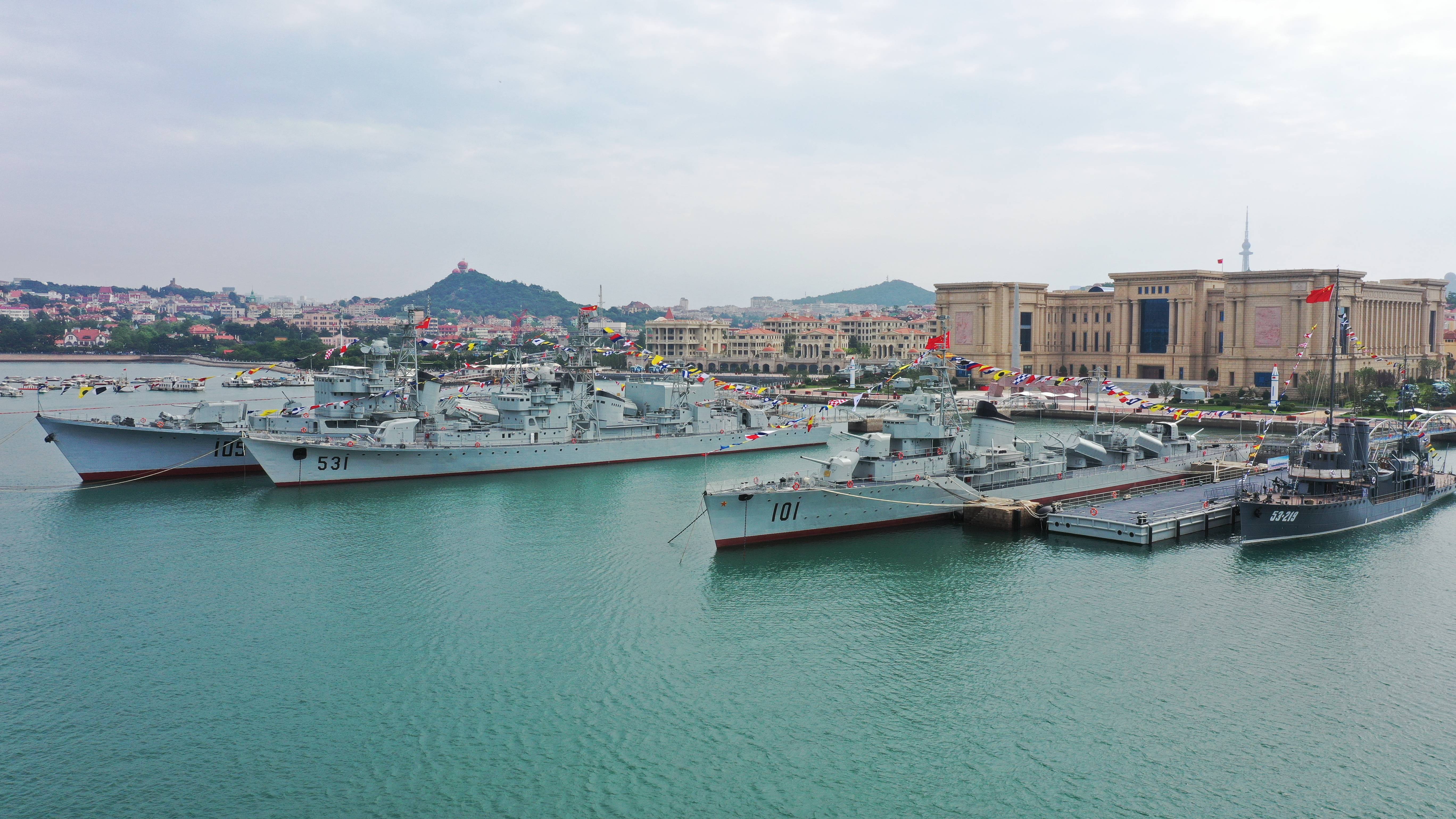教员平稳而深邃的目光,越过这六艘舰艇,穿透这条从百年前内河炮舰演进至当下远洋海军的时空长廊,投向了海军博物馆,投向参阅的海军队列,投向了观礼的人群,投向岸上铁流、空中银翼和凌海工业奇观,投向正在海博广场上倾听海陆兵锋鼙鼓而来的首长......从此刻回顾往昔,可以迎着这道目光,镌记人民海军一路走来的浴血鏖战;从此刻眺望未来,正当追随这道目光去见证:但日月所照、凡波涛起涌,再无华夏力量不征之海......