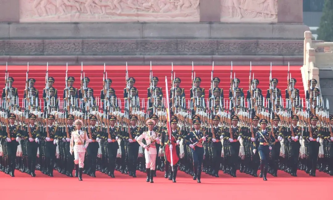 三、天安门城楼:承载着中华历史文化传承数千年的厚重积淀,更凝聚起当下全国人心共同热望而成之灼焰,为正在受阅的当下全球最强盛的战争利刃淬炼上无当锋锐。这座古老庄严的建筑,她目睹过中华民族如何坠入最无望的深渊,也见证着14 亿人的期待和力量正重新凝成一体。教员和各任核心从天安门城楼投下的殷切目光,激发着每一位受阅官兵澎湃的报国心,阅兵仪式上的每一个正踢和呐喊,都饱含着 “传承文明基因、捍卫民族利益” 的战略意蕴。