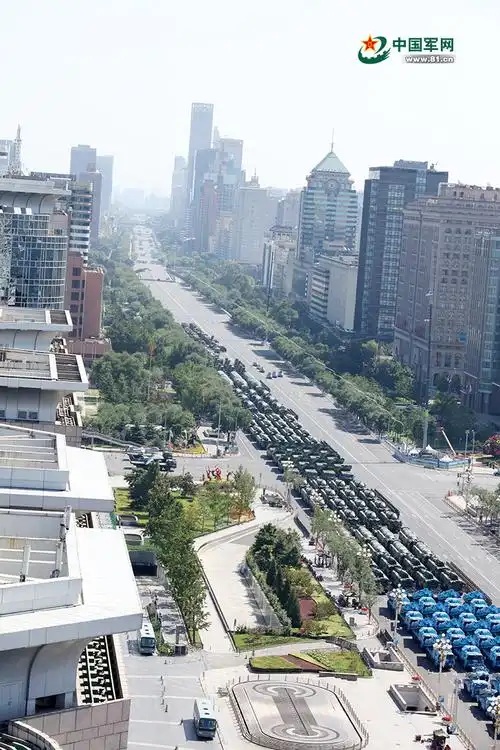二、十里长安街:绵延纵深的线性布局纵贯北京的核心区,构建起陆空力量行进、展示的通道。陆军各方阵的军靴顿踏和履带碾震,将阅兵式的地面轴线与长安街标定重合;又以地面轴线为基础向天空测设出的阅兵式空中轴线上,有不同机型、高度、梯队的空军战机作通场展示,使得陆空军全体受阅序列在时间/空间双重维度上达构成“无间断威慑链”,成为中华文明底蕴渊远流长和中国国家力量无远弗届的最佳具现;