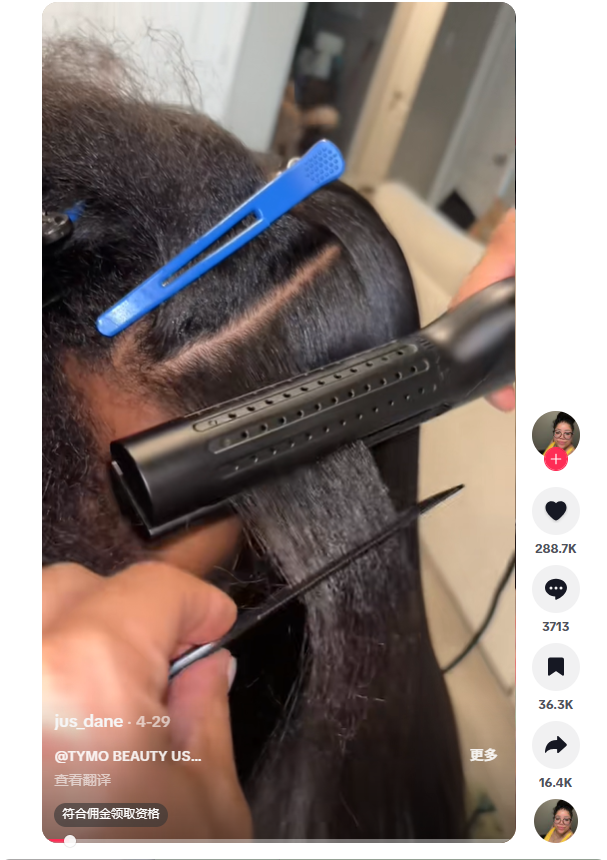 比如,@tymobeauty_official在2025年5月份所发布的一条反馈合集,将白人和黑人两种完全不同的发质放在一起,重点突出了TYMO直发梳重点突出了TYMO直发梳的广泛适用性与显著效果,该视频最终获得了90.75万播放,为品牌带来了极大的声量。