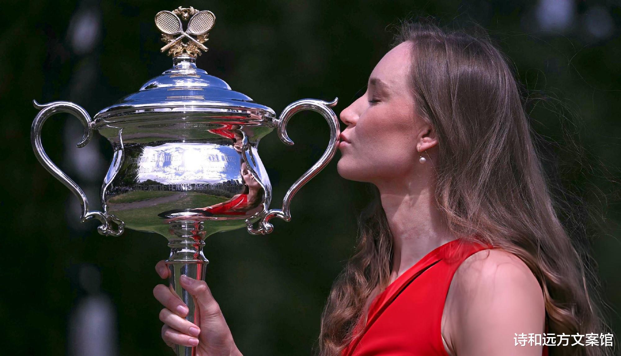 莱巴金娜红裙夺冠写真惊艳全场,澳网新王登基球迷热议
