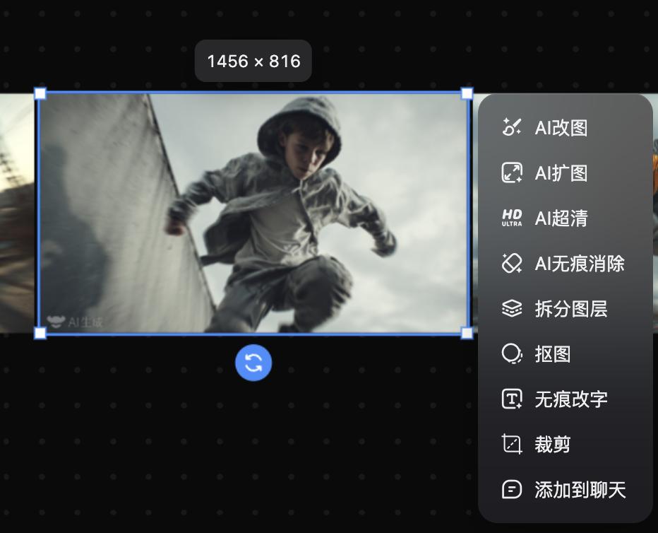 但其实像改图、扩图、裁剪这种涉及不到具体图片细节的功能点算不上啥亮点,大部分AI都有。