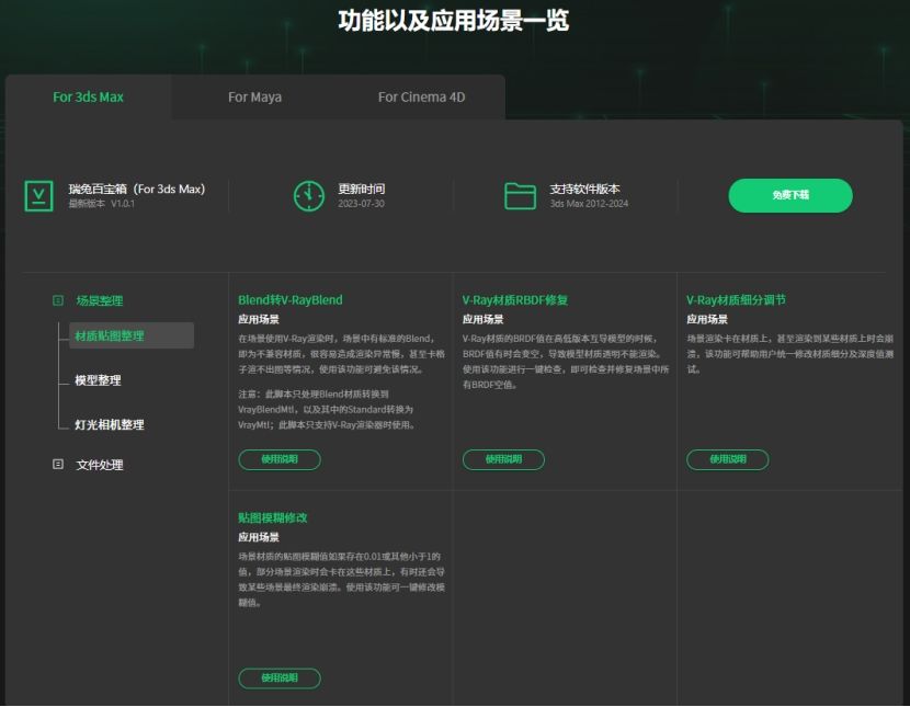 一、瑞兔百宝箱核心功能:覆盖 “材质 - 模型 - 灯光 - 文件” 全环节