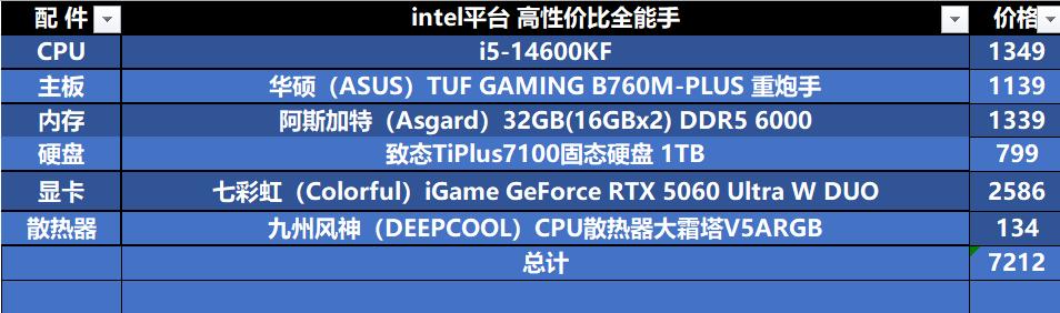 选择B760主板搭配是性价比最高的方案,足以发挥其性能,且上市时间久价格也基本触底。由于功耗不算太高(125W),一款优秀的双塔风冷就能轻松压制,对机箱和风道要求不高。