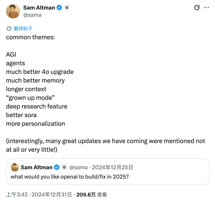 在去年的年底的时候,奥特曼就在自媒体上公布了OpenAI将要推出的几个未来方向。其包含了AGI、Agent 以及升级版 GPT-4,而其中的“成人模式”在投票中一度高居榜首。