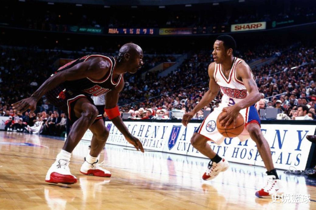 提到脚踝终结者,艾弗森绝对是绕不开的神。1米83的身高在长人如林的NBA里毫不起眼,但他那记载入史册的“杀手变向”,让篮球之神乔丹都成了背景板。1997年3月12日,76人主场对阵公牛的常规赛中,当时还是新秀的艾弗森正处于职业生涯的起步阶段。面对乔丹的防守,他连续试探运球铺垫节奏,随即衔接一记电光火石的体前变向,肩膀猛然下沉制造突破假象——这一假动作成功诱使乔丹下意识横移封堵,艾弗森则瞬间将球拉回,在摆脱防守的同时稳稳命中中距离投篮,留下乔丹作为背景的经典画面。2001年总决赛,他晃倒泰伦·卢后从容跨过的瞬间,不仅成了NBA官方教学案例,更让全联盟防守后卫的准则都改了——没人再敢轻易贴防他的变向。AI的杀招从不是单纯快,而是0.6秒内完成的节奏切换,防守者刚跟上他的第一步,就已经掉进了重心陷阱。