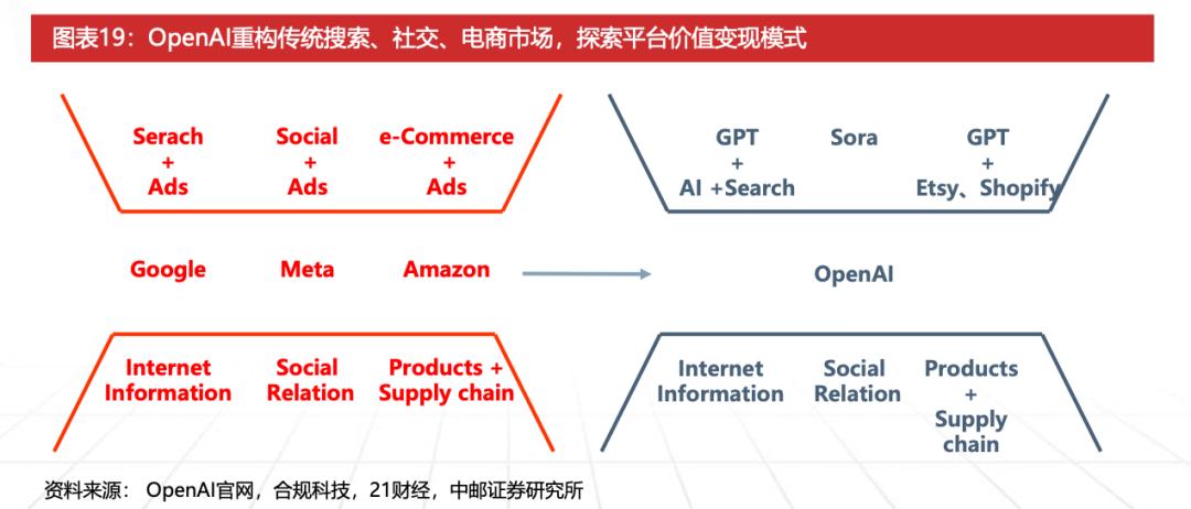 不难发现,从搜索到社交到电商,OpenAI几乎覆盖了互联网生态内大多数流量场景,除了内容。
