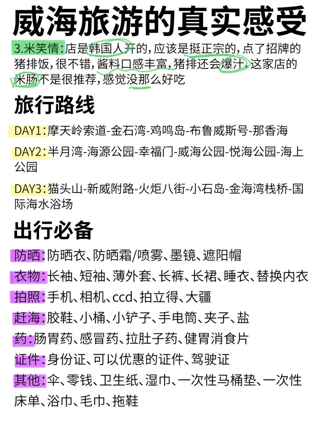 期待了好久的威海之旅落下帷幕啦,威海好好玩的😃,记得做好攻略🗺️再粗发哦!把我的旅行心得给写✍️下来啦,希望能对姐妹有个帮助👏