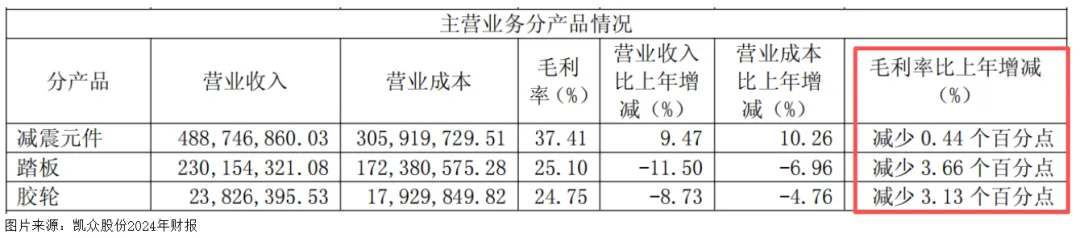 业绩下滑早有征兆,早在2024年年报出炉时就可以看到,主营产品的毛利率均有所下滑。