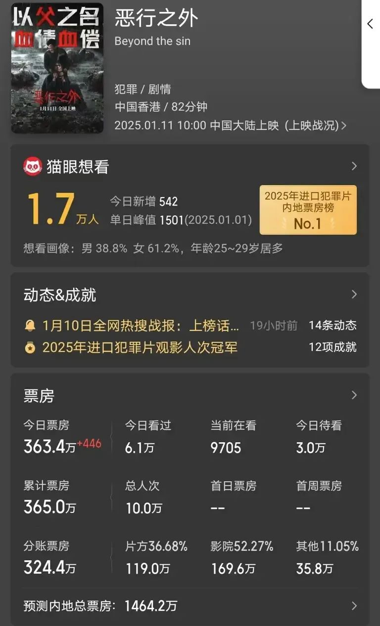 在电影市场,有一种情绪叫“捧一手港片再摔个跟头”。无论是出于情怀还是对港片昔日辉煌的执念,每当一部港片上映,总有观众期待着“奇迹”的发生。然而,这一次,连三位影帝都未能扭转命运的车轮,投资1亿的古天乐新片《恶行之外》,目前预测最终总票房不会达到2000万人民币,“亏麻了”成为最写实的注脚。