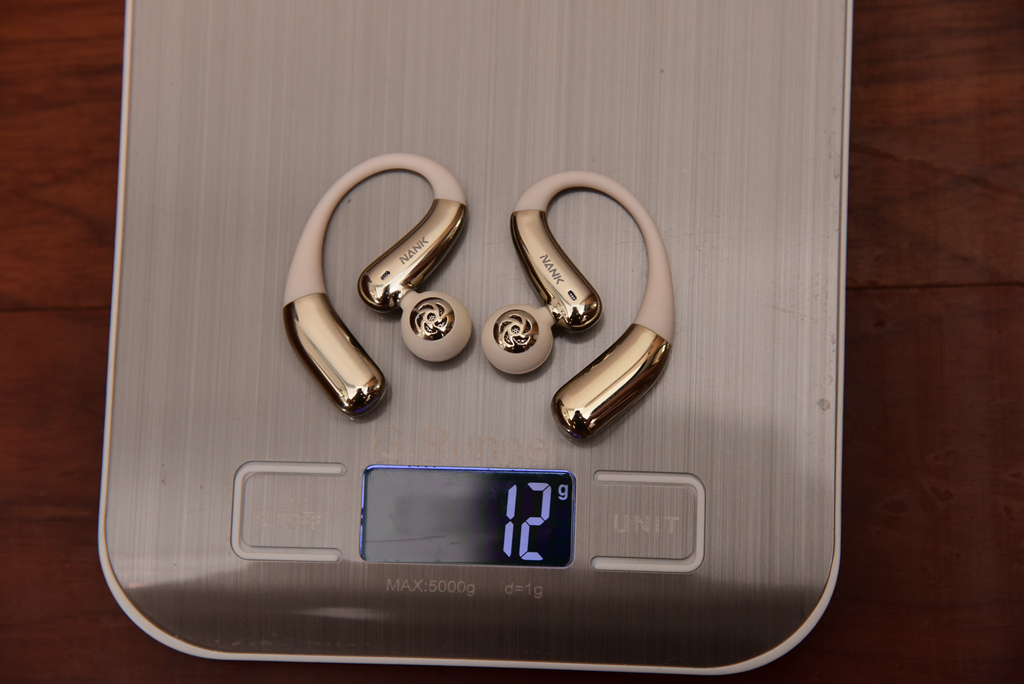 两个耳机的重量只有12克,戴在耳朵上非常轻松。