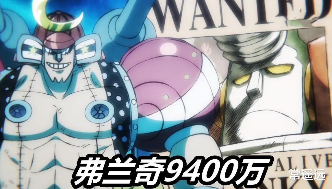 在正式击败第三位七武海之后,草帽团所有人的赏金再次提升,弗兰奇的悬赏金也来到了9400万,几乎达到1亿超新星的水准,已经比老沙的悬赏还要高。