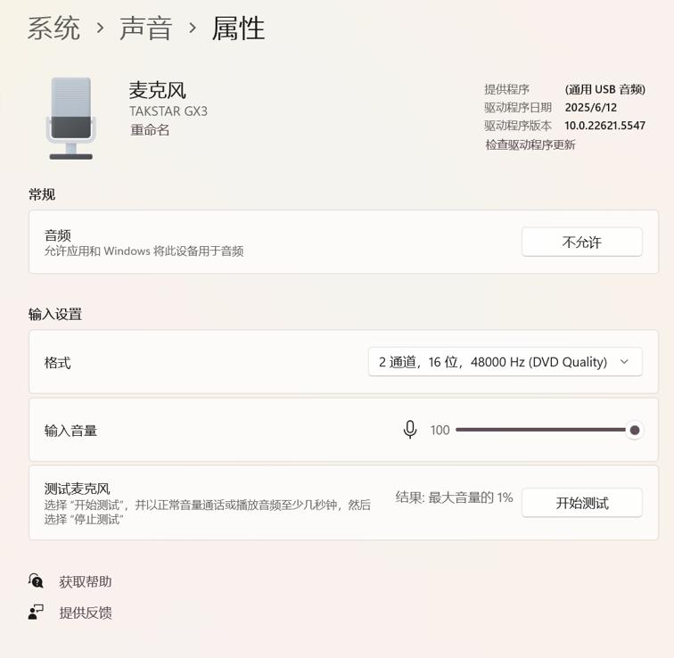 采样方面,实测GX3支持48kHz/16bit的采样精度,虽未达到专业录音棚级别设备的更高标准,但对于网络直播、游戏语音、在线K歌等应用场景已经绰绰有余了。