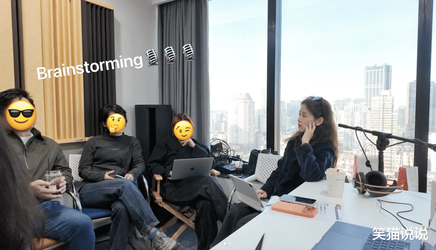 从奶茶妹妹的着装和她的发型可以确定,这是跟她在INS晒出开会时拍的照片是同一天的。粉丝们由此得知奶茶妹妹估计要做播客类的项目,这让很多粉丝倍感期待。