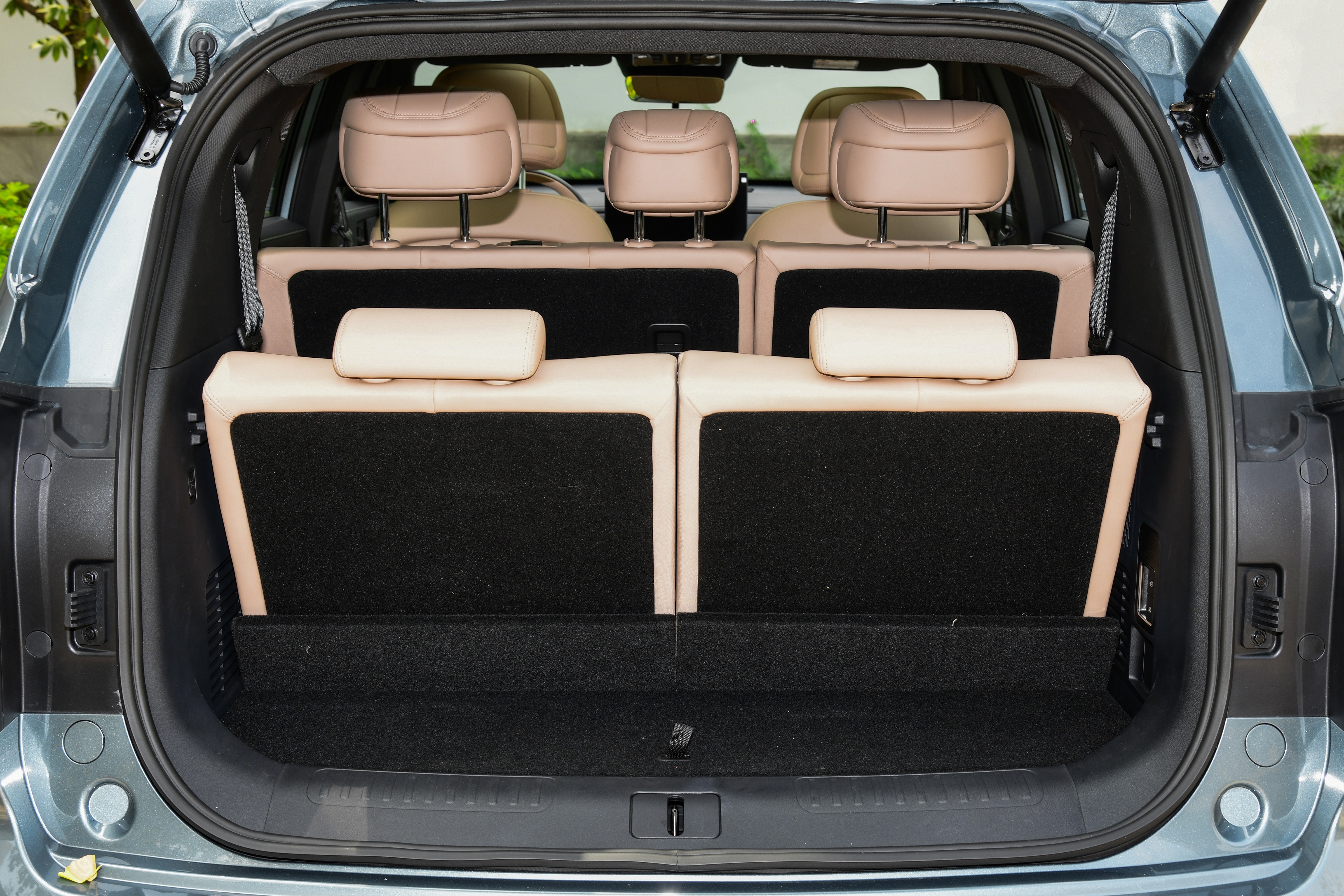 第三排空间并没有成为 "鸡肋"。虽然腿部空间比第二排稍显局促,但对于身高 170cm 左右的乘客来说,短途乘坐完全没有问题。得益于电动调节功能,进出第三排也比很多竞品方便 —— 只需按一下按钮,第二排座椅就会自动前移并放倒靠背,老人孩子也能轻松上下车。
