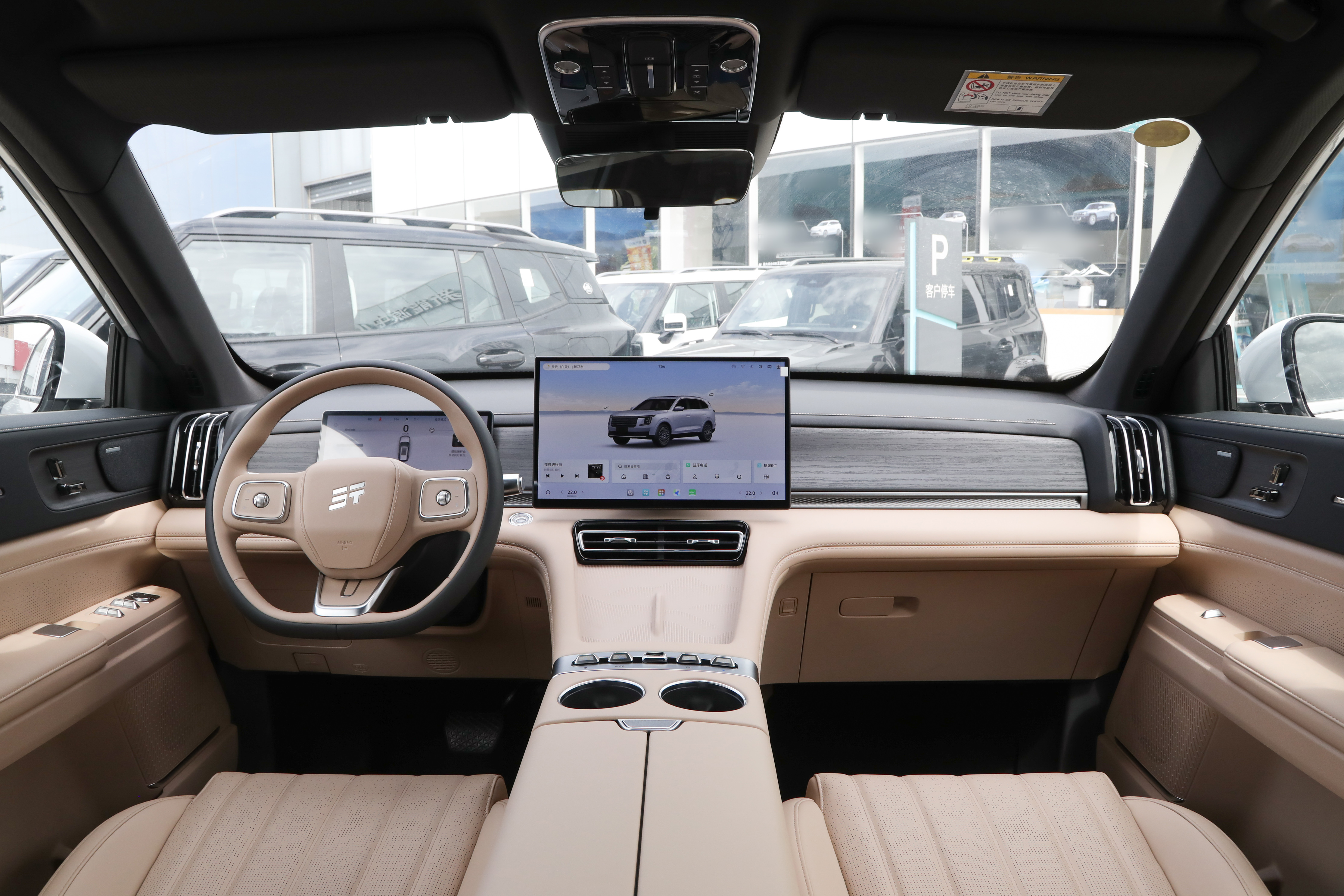 不过真正让我惊艳的是这套 "AI 座舱" 的实际表现。标配的骁龙 8155 芯片果然名不虚传,操作流畅度堪比智能手机,彻底告别了传统车机的卡顿烦恼。15.6 英寸的向日葵屏支持左右 10° 偏转,配合四音区语音控制非常实用 —— 当副驾说 "打开空调",屏幕会自动转向副驾;后排孩子喊 "播放儿歌",系统也能精准识别位置。