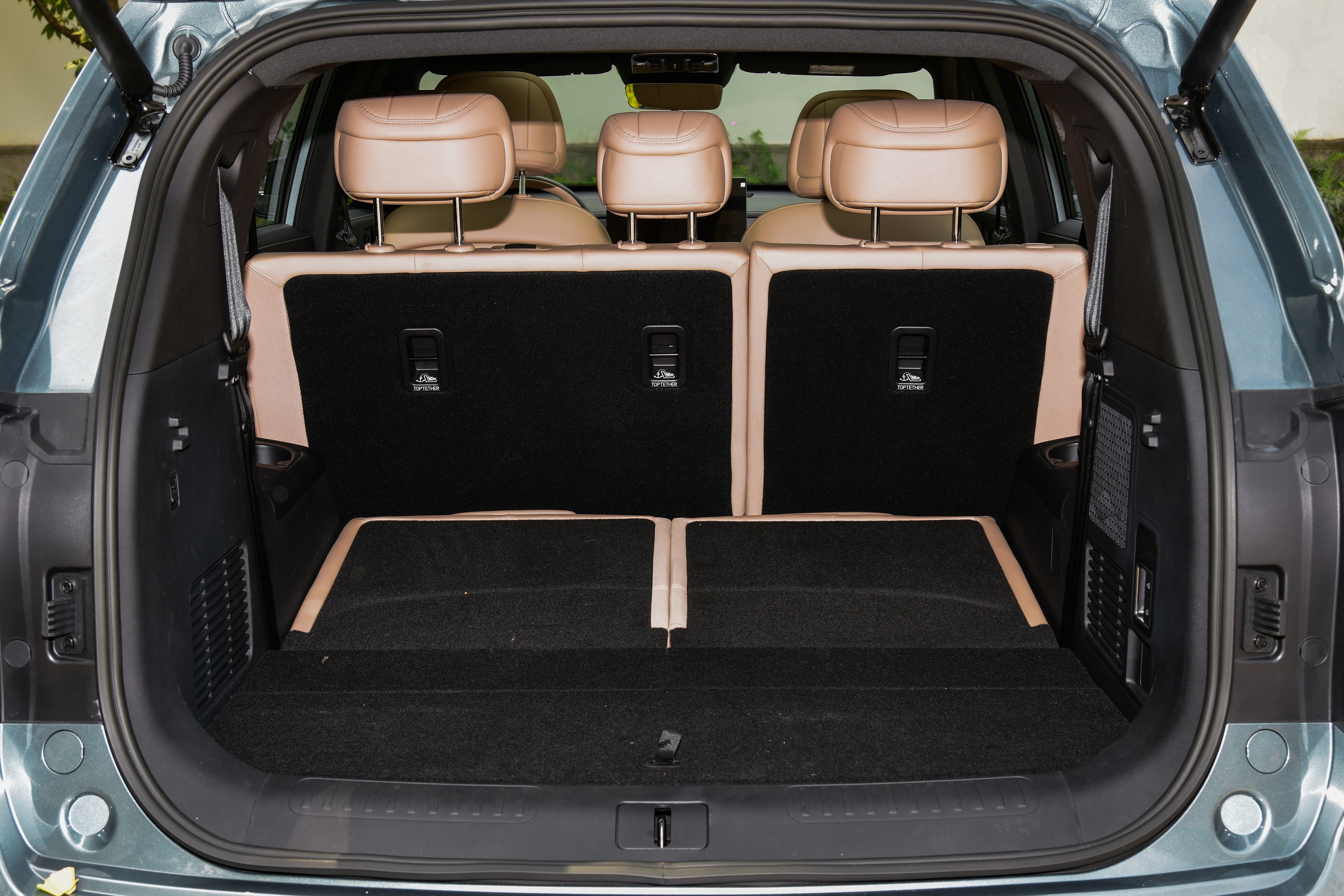如果平时用不到七座,把第三排座椅放倒后,就能获得一个容积达 732L 的后备箱(含 74L 下沉空间)。我实测过,这个空间足以容纳两个 28 寸行李箱、一个婴儿车和若干背包。要是需要装载大件物品,把第二排也放倒后,比较大空间可扩展至 1708L,周末去宜家采购或者搬运自行车都不在话下。