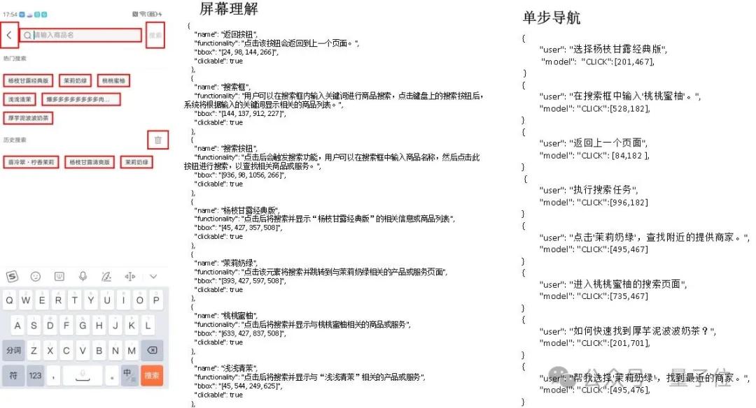 基于单个GUI截图,模型需要能够像人一样对屏幕进行操作,中兴构建了几十万的单步指令数据,用来训练模型将用户指令映射到正确的UI操作上。