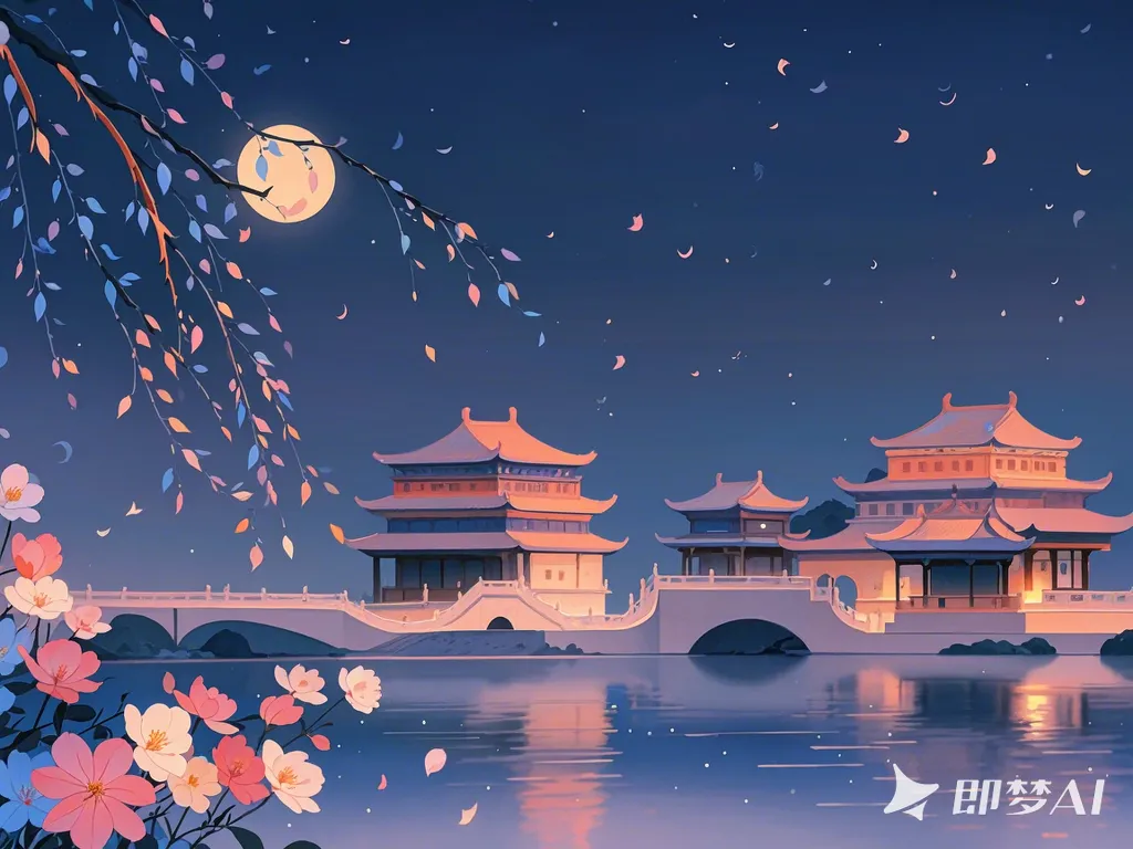 洛阳城,是唐朝的东都,李白此刻正客居在洛阳城内,夜色降临,窗外月光洒落,街道上的喧嚣渐渐沉寂,忽然,一阵悠扬的笛声划破了夜的宁静,飘荡在洛阳城的上空。那笛声清越而悠扬,如同山间清泉,潺潺流淌,又似远方亲人的呼唤,温暖而亲切。吹奏的曲子是折柳曲,而杨柳总能让人想到离情别绪,李白被这笛声深深吸引,他走到窗前,凝望着夜空中那一轮明月,心中涌起一股难以言说的情愫。