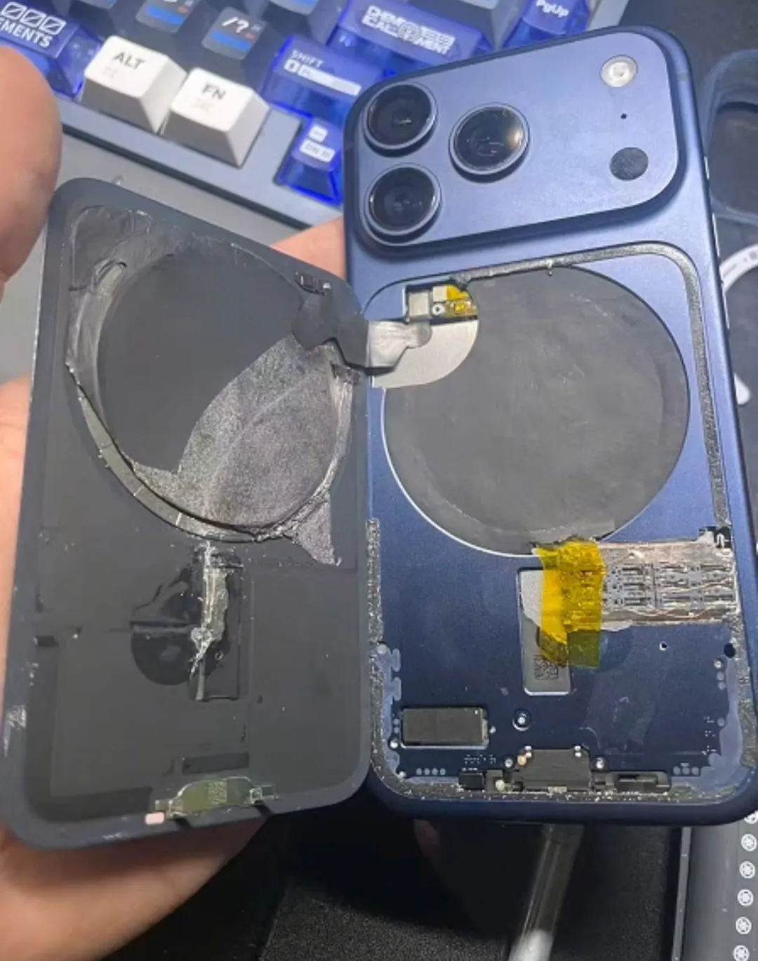 第一批上车iPhone17Pro改卡的勇士已经在平台开始了吐槽,四百多块钱的改卡,耗时差不多9天时间,无线充电被干废、防水胶被搞得稀烂、机器里面全是铁屑,里面一些无线充电卡扣也被干没了...