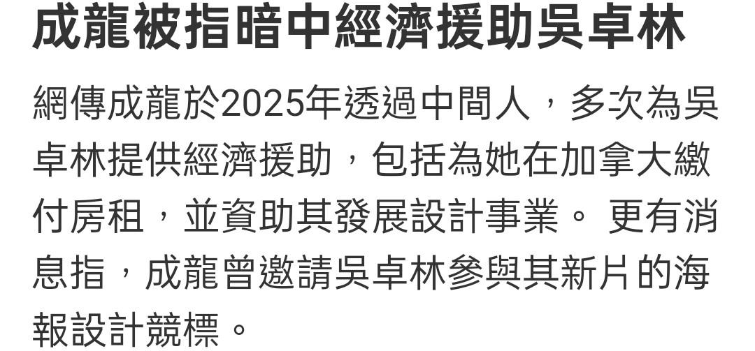 而且在此前成龙的团队主动联系了吴卓林的工作室,将一部电影的宣发设计工作交给吴卓林负责,这种种都表明两人的关系往好的方向走了。不过吴卓林还是很有边界感,收费坚持按市场价收。