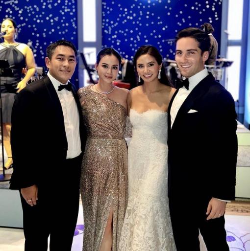 这张照片女孩,就算是奚梦瑶嫁入了赌王家,也还是进不了这张照片,这几个女孩加起来可谓是千亿。 照片中,身穿黑色裙子并露出大腿的女孩是何超欣,左边身穿紫色的美女是千亿富商林建岳的女儿林甜儿。 站在边上两女孩,白裙子的女孩是股神巴菲特的孙女,黑裙子女孩则是雅诗兰黛集团的第四代继承人。 这四个女孩,随便一个女孩都能够震撼名流圈,她们之所以聚集在一起,就是为了参加合照C位的女孩的宴会。 这位女孩叫陈颂廉,在香港出生,如今已经嫁给了雅诗兰黛集团第四代继承人乔什·兰黛。 乔什是雅诗兰黛集团创始人的曾孙,雅诗兰黛集团市值高达860亿元,可是对于陈颂廉来说,她却不是嫁入豪门。 外媒则是把陈颂廉和乔什的结婚定义为是北美和亚洲家族的豪门联姻。 其实,在陈颂廉结婚之前,她依旧已经是香港内顶级的名媛。 陈颂廉的父亲陈健是亚洲金融圈的大佬,毕业于沃顿商学院,还担任过高盛集团的执行董事,后来才出来自立门户。 而他的关系也遍布亚洲商界。 也因此,陈颂廉结婚的时候,开头的那四个名媛才会到现场祝贺。 而同时来参加婚宴的宾客奚梦瑶也只能站在小姑子何超欣的背后拍照。 陈颂廉的丈夫乔什·兰黛,当时为了追到陈颂廉,他追到中国留学,也算是费劲了心思。 两人是在陈颂廉参加学校举行的一次活动中认识的。 乔什·兰黛从小接受的也是顶尖教育,入学门槛都非常高。 两人在活动中相遇后,很快就变成了热恋的情侣,两人谈恋爱4年,甚至,乔什为了更好的了解女友,特地学习了中文和中国文化。 2023年3月两人在纽约大婚,婚礼现场,乔什考虑到妻子是中国人,还特地增加了很多中国元素,如加上了中国的大红灯笼,还有舞龙舞狮的活动,两人还穿着中国传统的喜服接待客人。 这对新人的结合,让无数人羡慕不已,真的是门当户对,俊男靓女的最好结合。 也许这就是爱情的缘分,也祝福两人的婚姻幸福长久。 作者:文又又 编辑:文又又