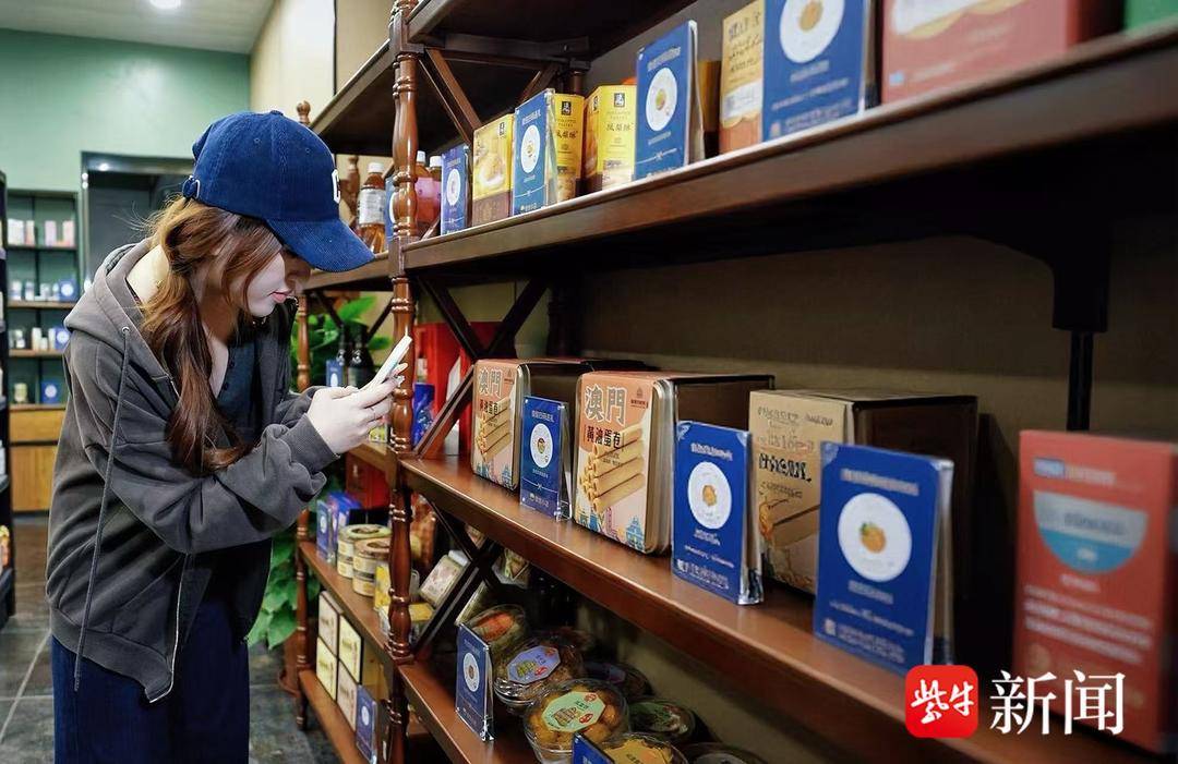 游客在澳门手信微信礼物体验店通过扫“送礼码”给朋友送澳门手信礼物