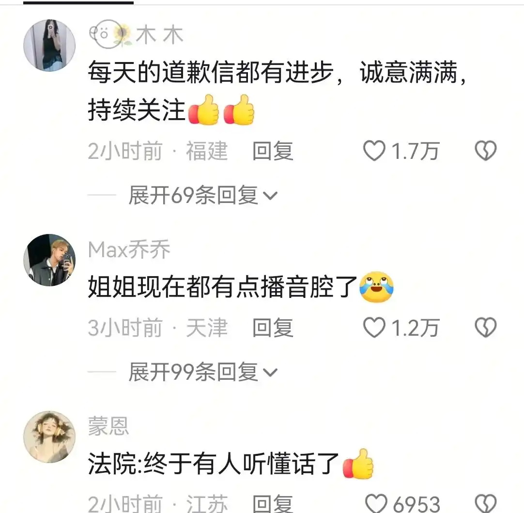 每段“道歉”都附上法院判决书截图、消费证据和事件时间线,将“诚恳认错”变成了“细节曝光”。网友戏称:“这是把道歉视频做成了PPT汇报。”