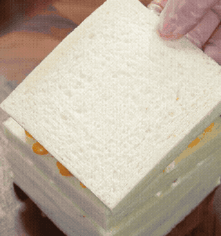 香香小贴士吐司边一定要切掉,这样口感才不会发硬。