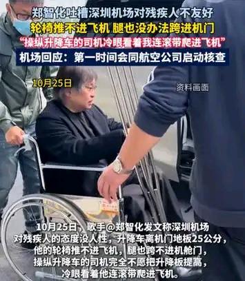 事件的发酵始于2025年10月25日的一条社交动态。郑智化在文中明确表示,深圳机场登机车与机门存在25公分高度差,轮椅无法通行,而操纵司机拒绝调整高度,导致其陷入进退两难的困境。这番带有强烈情绪色彩的表述迅速引发共鸣,同为残障人士的歌手李琛直言“感同身受”,众多网友纷纷谴责机场服务的“冷漠”与“失人性化” 。舆论的强烈反应,折射出公众对残障群体出行困境的天然共情,也暴露出无障碍服务长期存在的民生痛点。