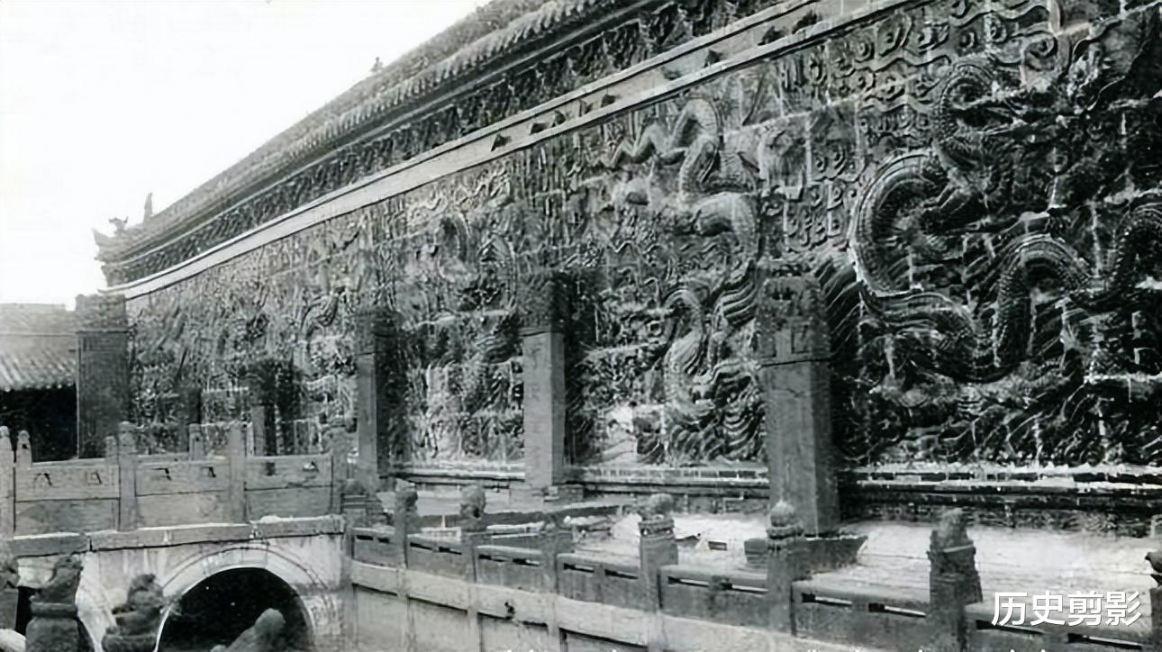 (九龙壁)九龙壁的龙纹棱角分明,石桥边浸着岁月的痕迹。