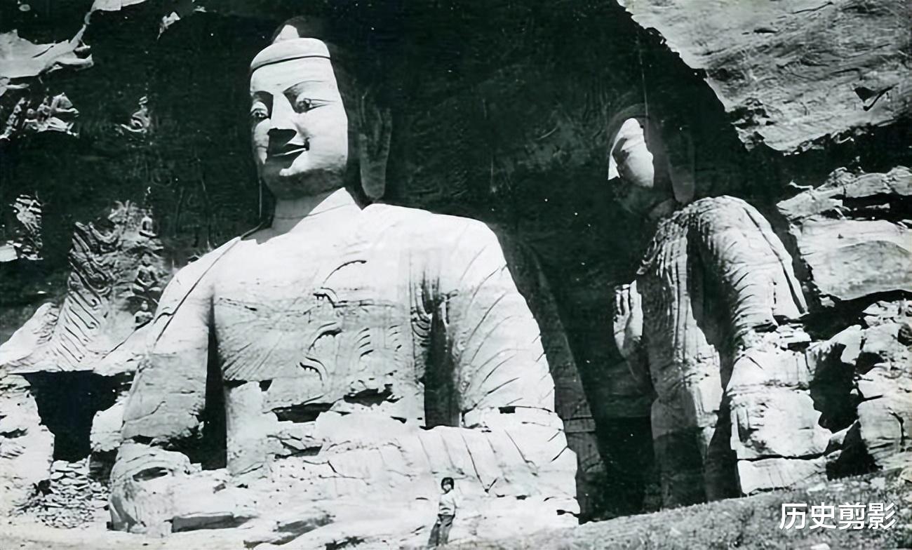 (云冈石窟)云冈大佛静立崖间,1940 年代的光影里藏着千年温柔。