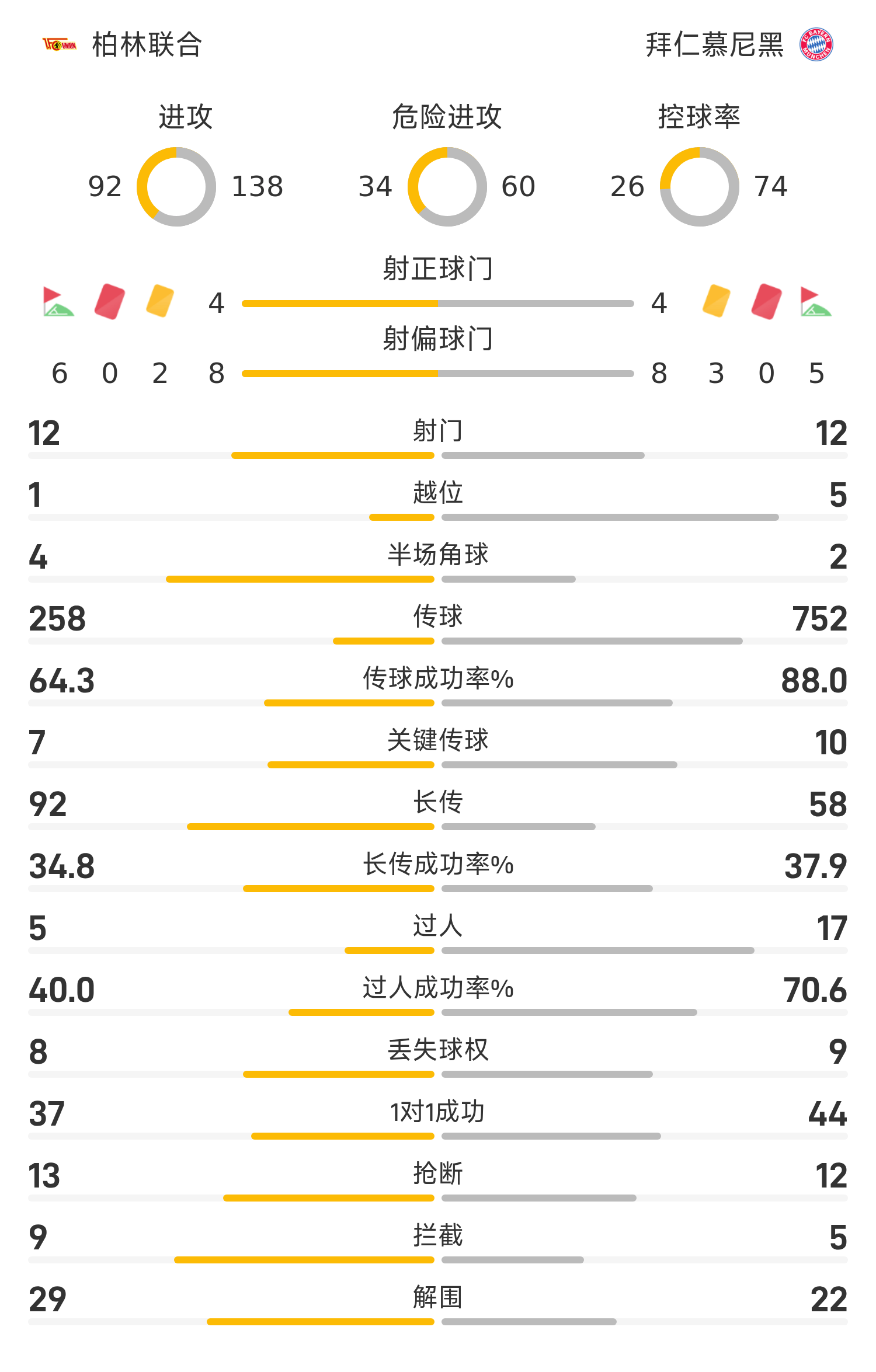 柏林联合则利用高效的防守反击和定位球战术,给拜仁制造了巨大麻烦。全场仅有少数机会,却凭借多基的梅开二度几乎赢得比赛。