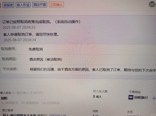 给客服打电话让客服和客人自行商量补齐本不该享有的优享会会员折扣85折(81元)差价,结果客服根本没和客人有任何协商,挂掉电话直接取消订单,原因是酒店原因(被动取消),我民宿并未要求取消订单,只要求补齐差价,给我民宿按违规处理。