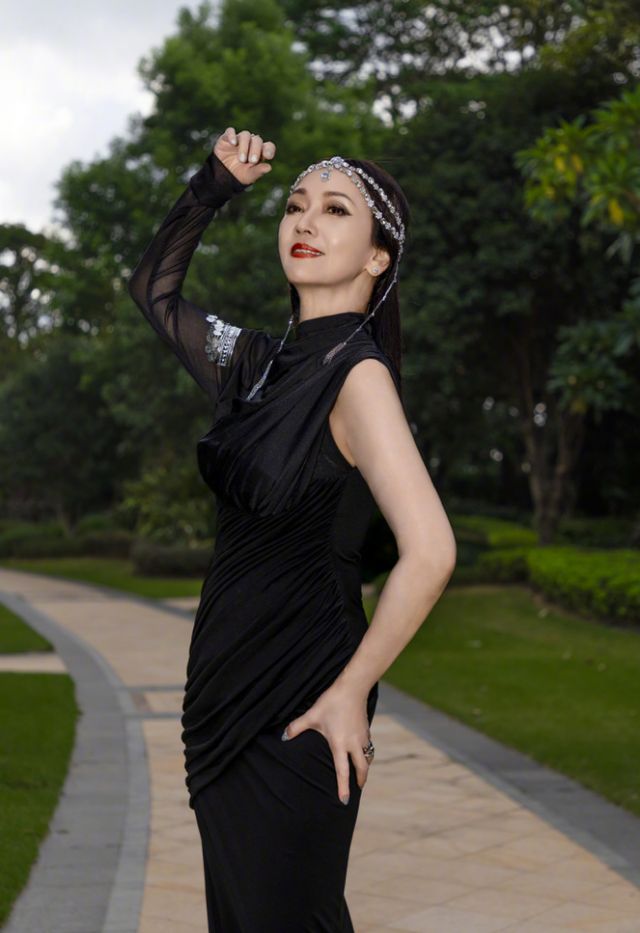 从赵雅芝发布的照片中可以看到,当天她以一个特别精美的造型现身,头发全部盘到后面,头上戴着精美的头饰,尽显异域风情。