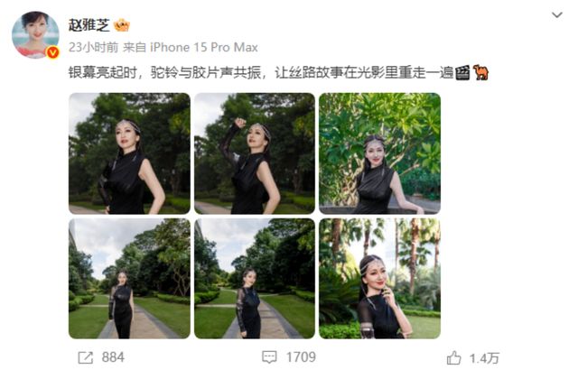 9月28日,女星赵雅芝通过社交账号发布了一组美照,并配文写道:“银幕亮起时,驼铃与胶片声共振,让丝路故事在光影里重走一遍。”