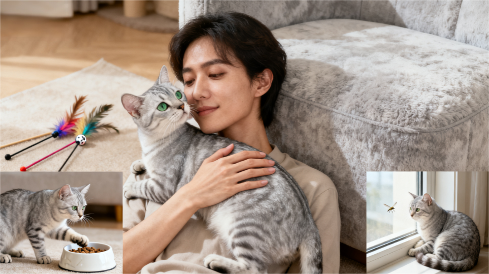 行为特征:性格文静却不失活泼,日常喜好安静蜷缩在舒适角落,但每日仍需 30 分钟左右的互动游戏,对逗猫棒、羽毛玩具兴趣浓厚;保留一定捕猎本能,会追踪家中昆虫,却极少破坏家具;与多数猫不同,部分个体对主人情绪异常敏感,当主人焦虑或低落时,会主动用呼噜声安抚,甚至轻舔主人脸颊,被称为 “情感疗愈师”。