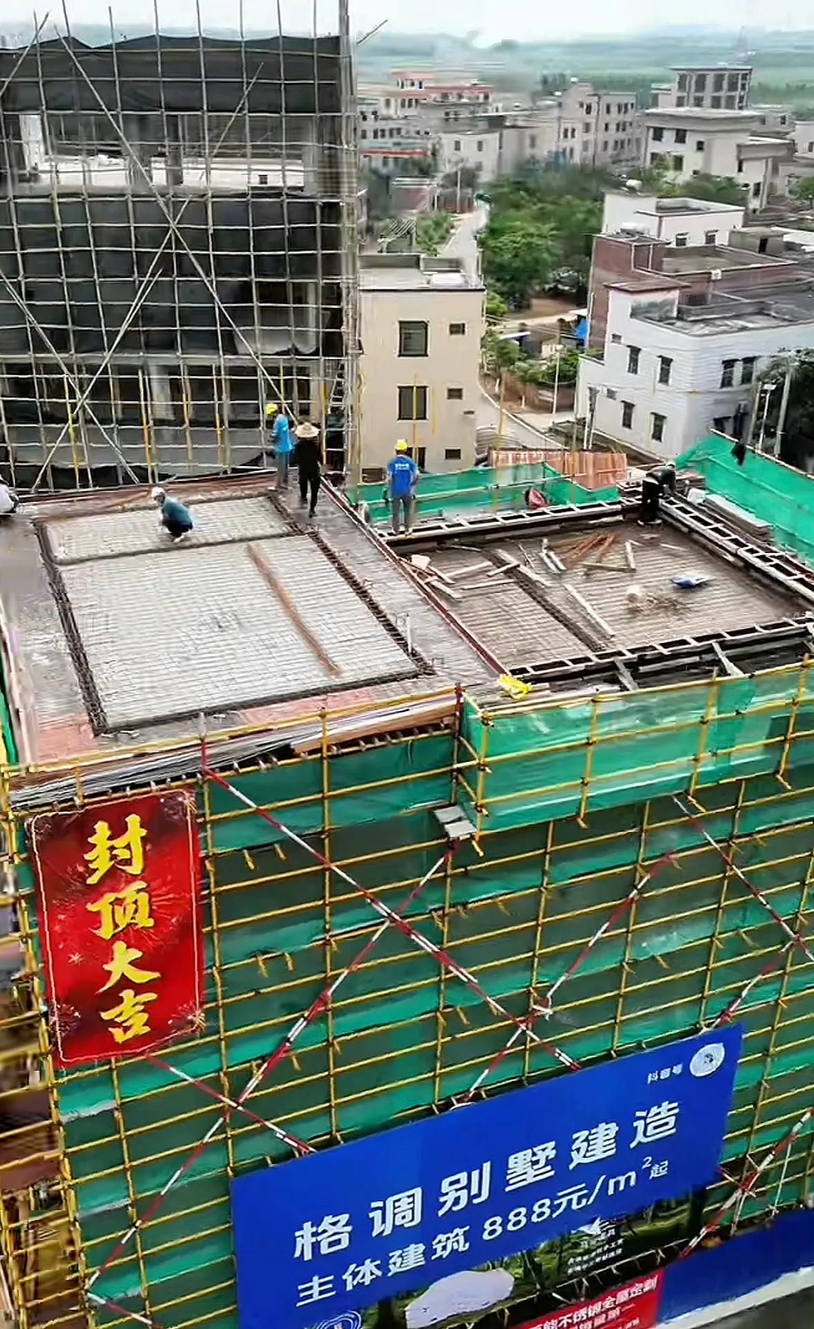 封顶时间是傍晚,全爸拿了一大卷鞭炮还有几箱烟花,围观的人齐刷刷的拿出手机拍视频,现场还有很多无人机,一起见证这个重要的时刻,全爸一脸欣慰地看着。封顶就代表着房子大框架已经建好了,以后就开始内部装修了,但是这就代表离入住不远了吗?