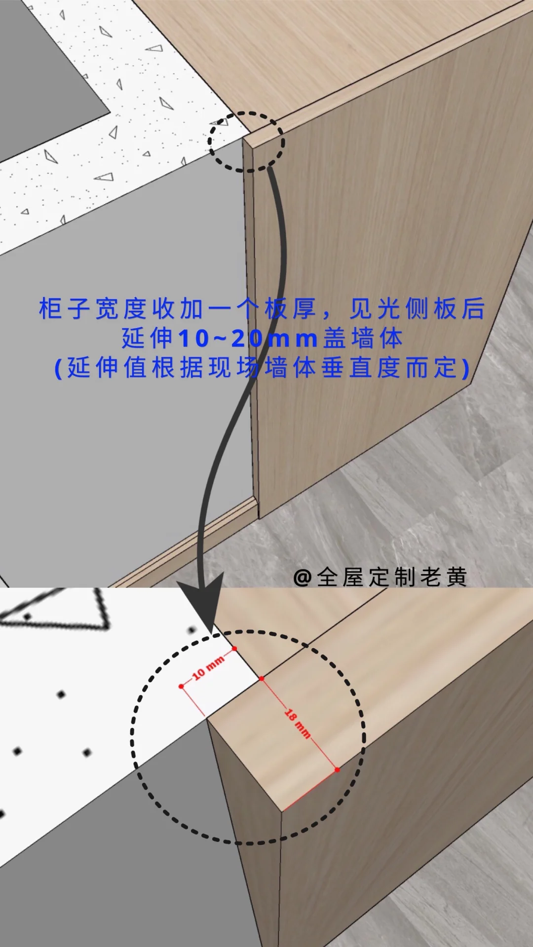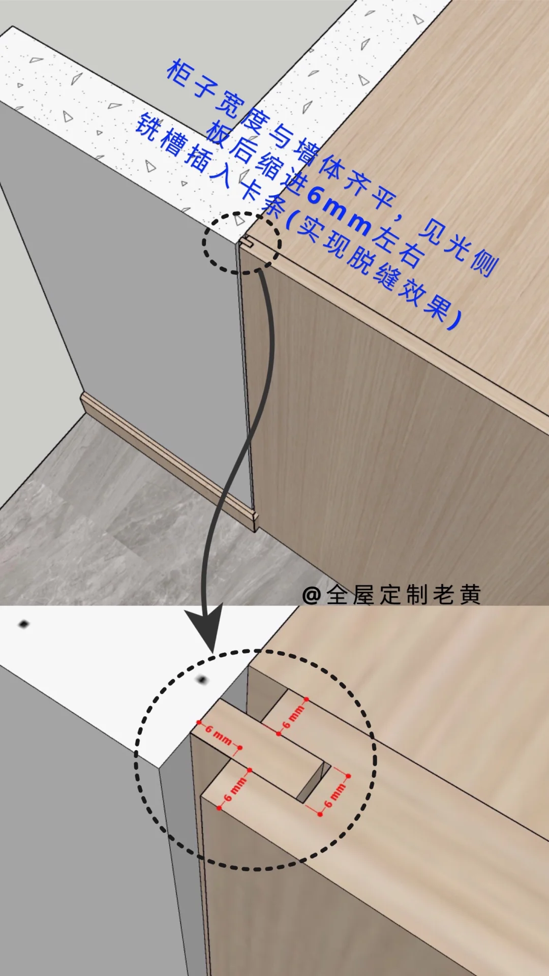 有很多兄弟姐妹说明明是刚装好的房子,在入住后不久就发现了柜子跟墙体接触处出现了裂缝! 那是在做柜子里时候把柜子宽度做平墙体了,记住不要做平墙,如果非要做平墙体那就要做好脱缝收口。 今天精心给你们整理了四种常用到的收口工艺,这样做可以防止如图一的开裂问题哦!你觉得哪一种适合你呢?