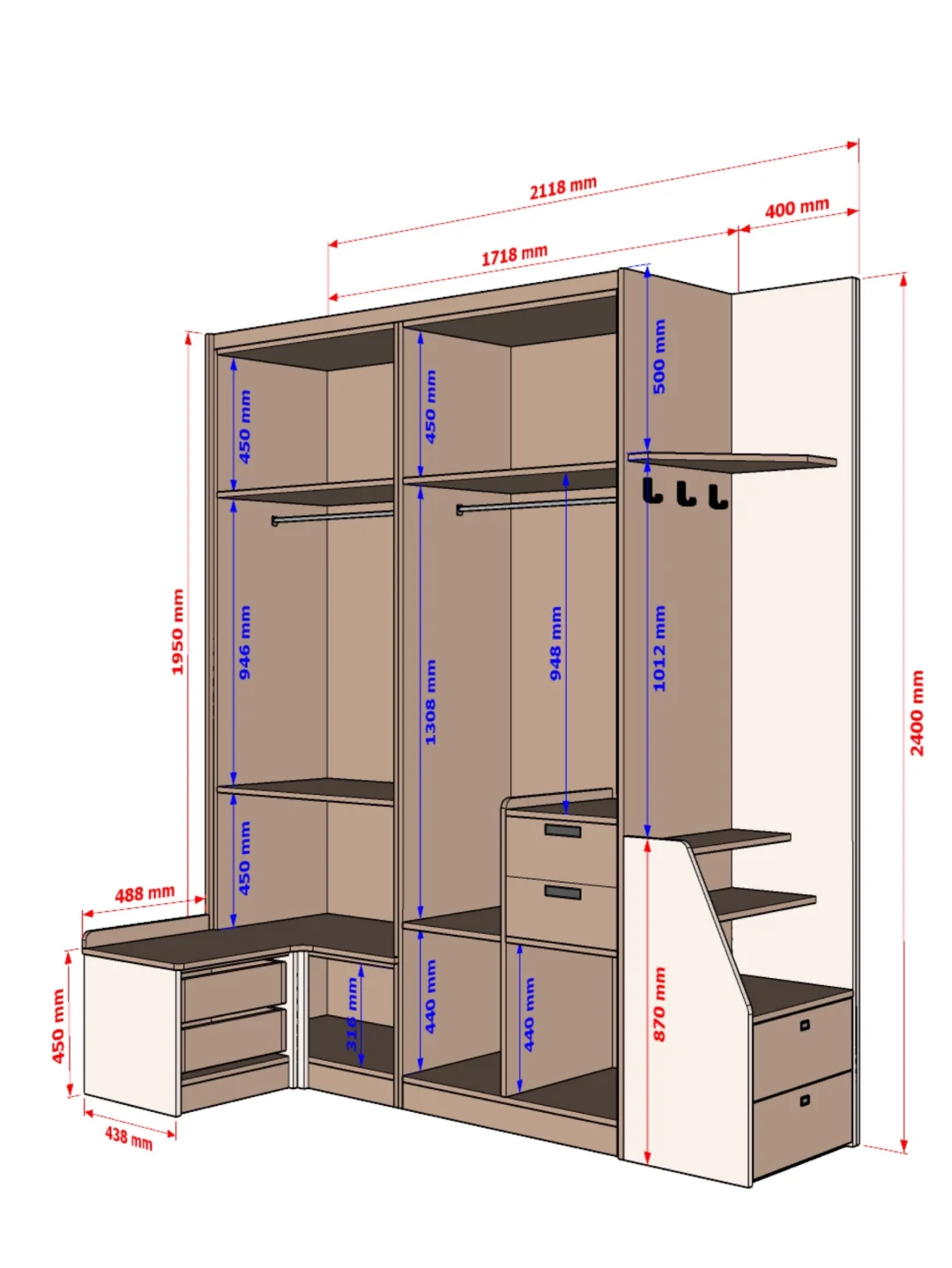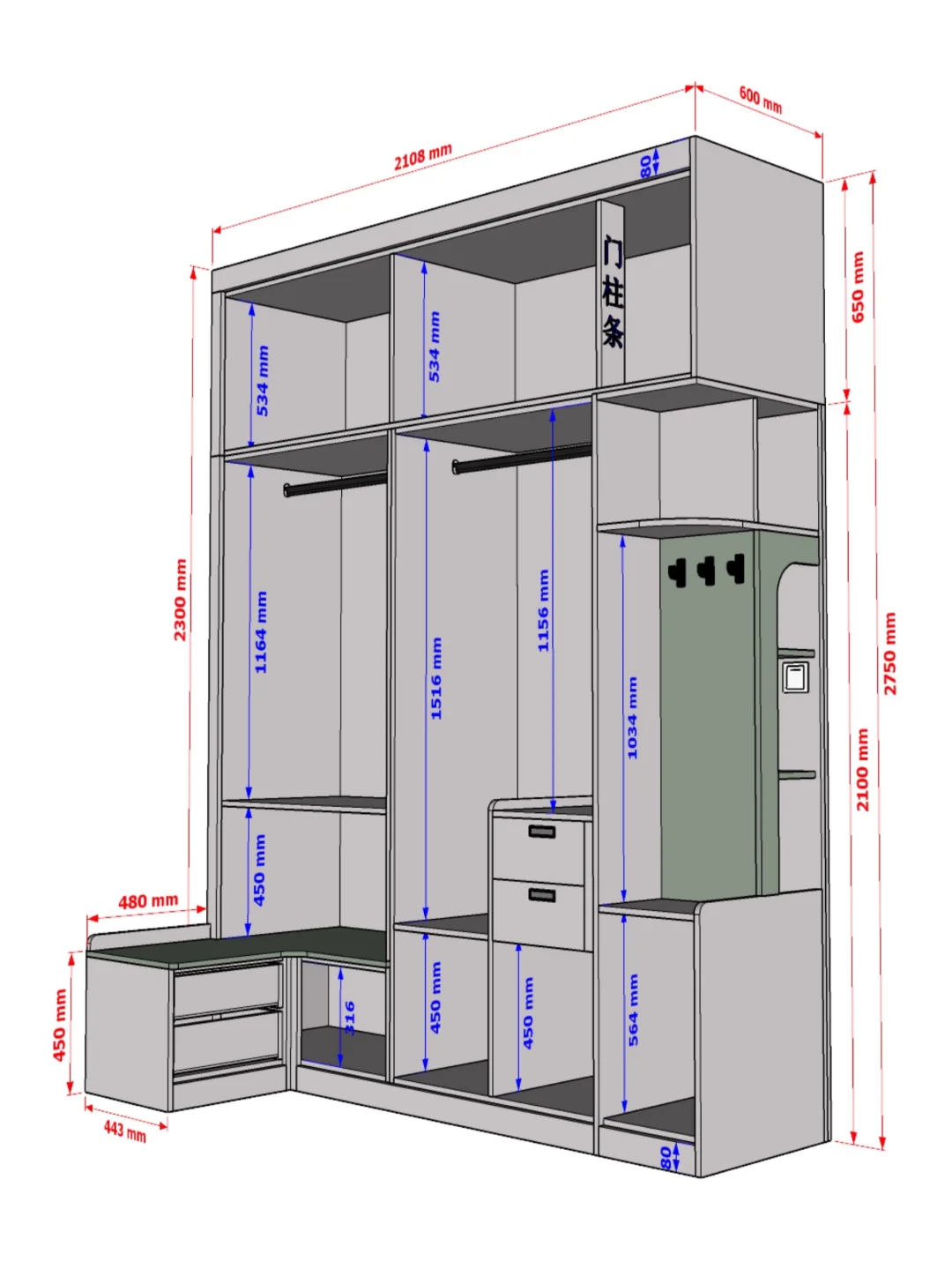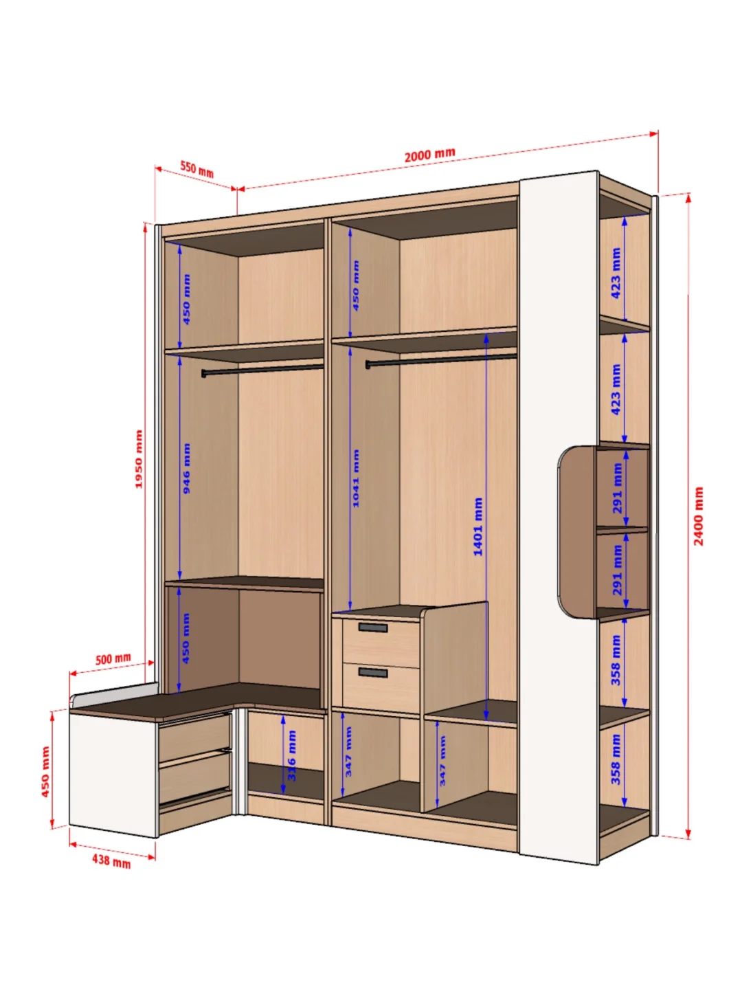 四款高颜值四开门衣柜设计(附带详细尺寸)
