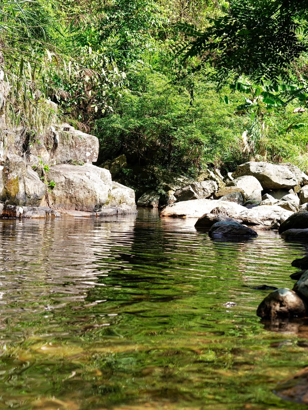 3️⃣往峡谷走有很多大大小小的深浅水潭,深谭可浆板、皮划艇、游泳、钓鱼…浅滩可溯溪玩水、水上搭营…