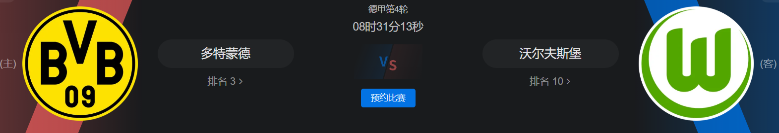 【027 德甲 09-22 01:30多特蒙德vs沃尔夫斯堡】