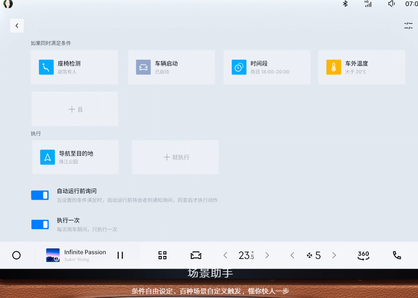 支撑这一体验的核心,是国产首颗车规级7nm龍鹰一号芯片。其AI算力达到8155芯片的2倍,搭配16G+128G超大存储空间,面对高强度多任务场景也能游刃有余。无论是同时操作导航、语音控制空调,还是运行多个娱乐应用,系统响应都流畅无卡顿,为手机车机互联提供了强大的硬件基础。